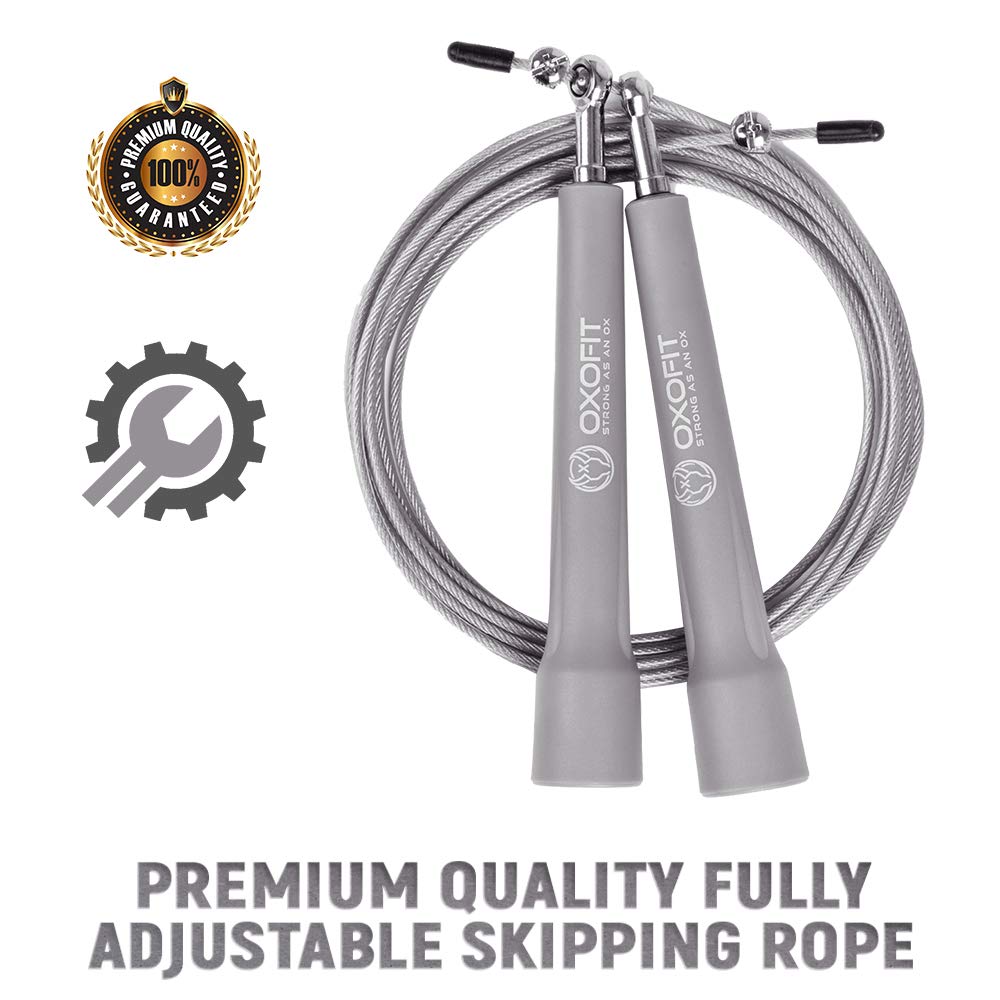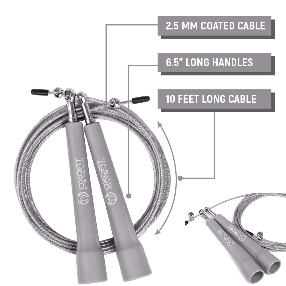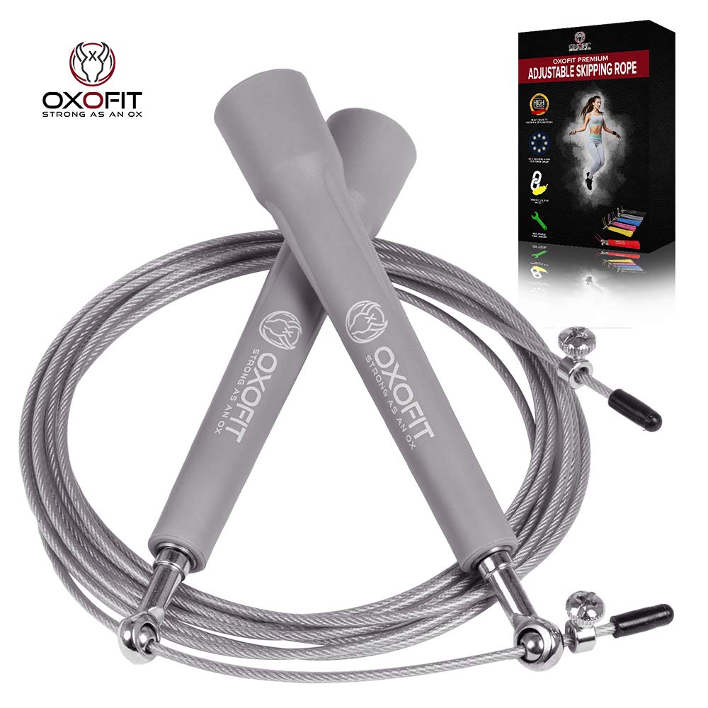 OxOFit Jump Skipping Rope with Bearing Adjustable Cables for Gym Training, Crossfit, Double Unders,