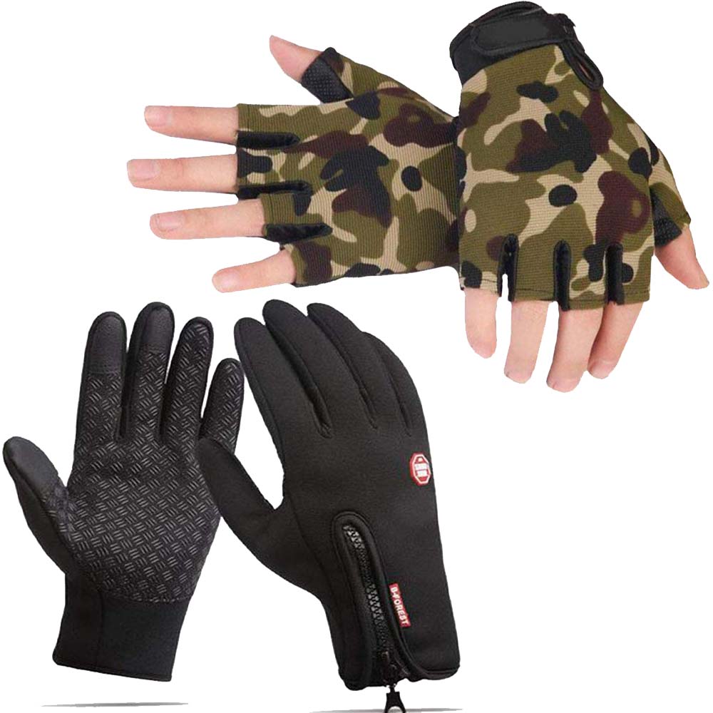 Outdoor Winter Bike Cycling Sport Gloves Full Finger & Half Finger Combo for Men (Black & Army Green